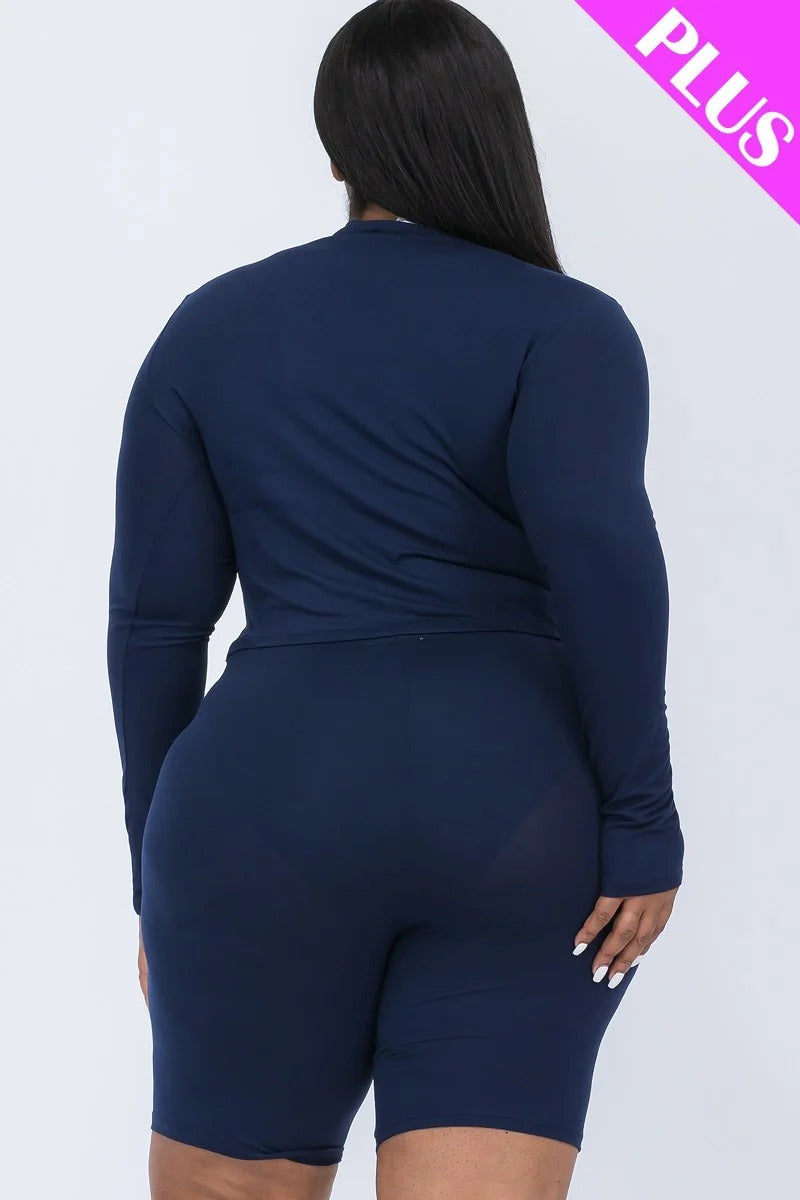 Plus Mock Neck Top & Biker Shorts Set